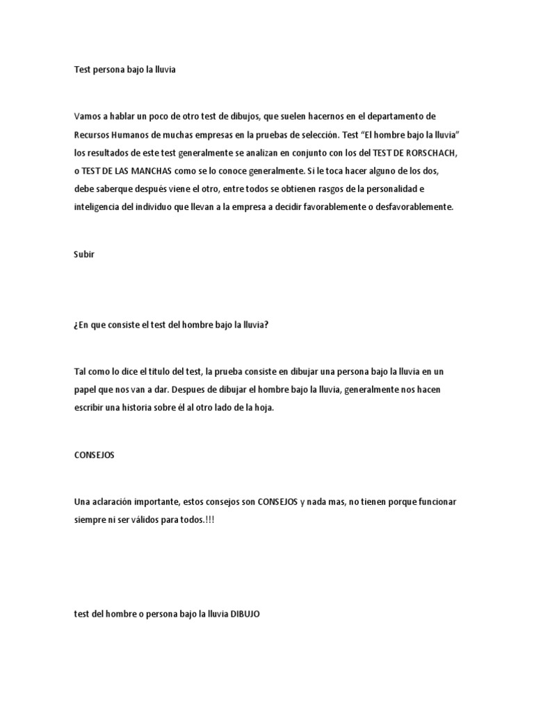 Test Persona Bajo La Lluvia Como Funciona Y Conclusiones