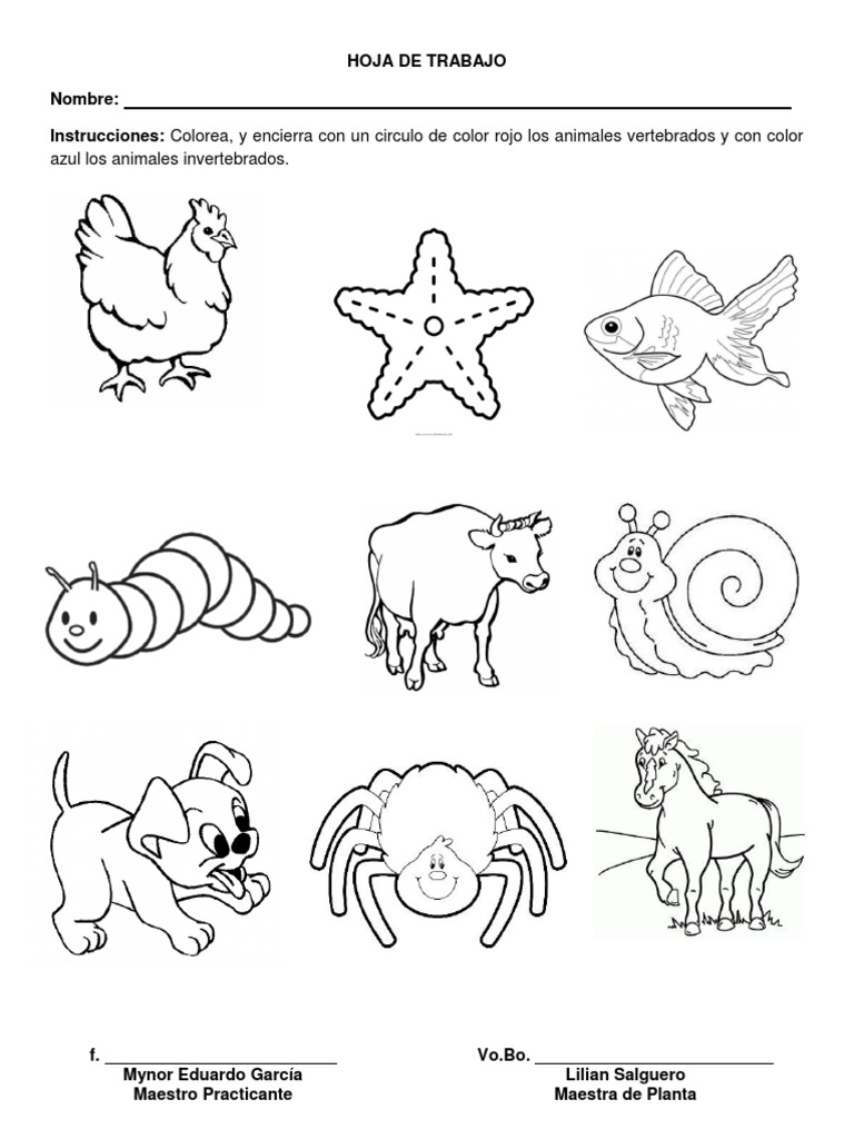 Hoja De Trabajo Animales Vertebrados E Invertebrados Docx