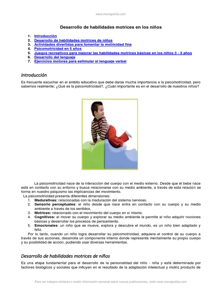 Desarrollo Habilidades Motrices Ninos Educacion De La Primera