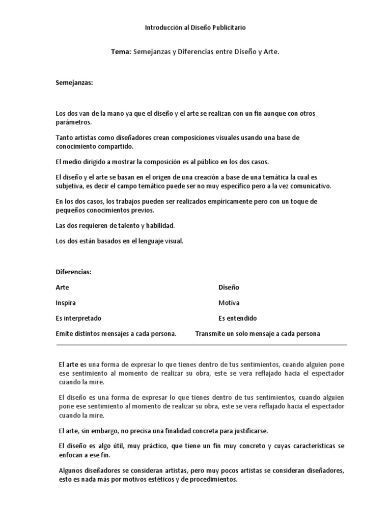 Semejanzas Y Diferencias Arte Y Diseno Diseno Ciencia Cognitiva