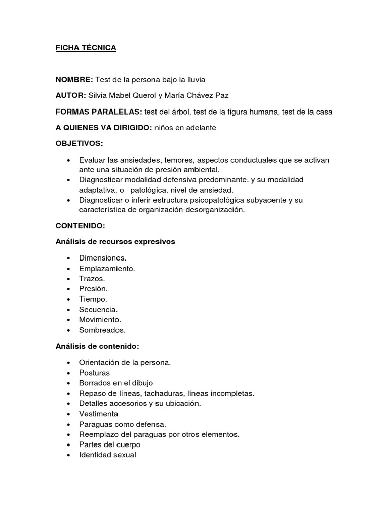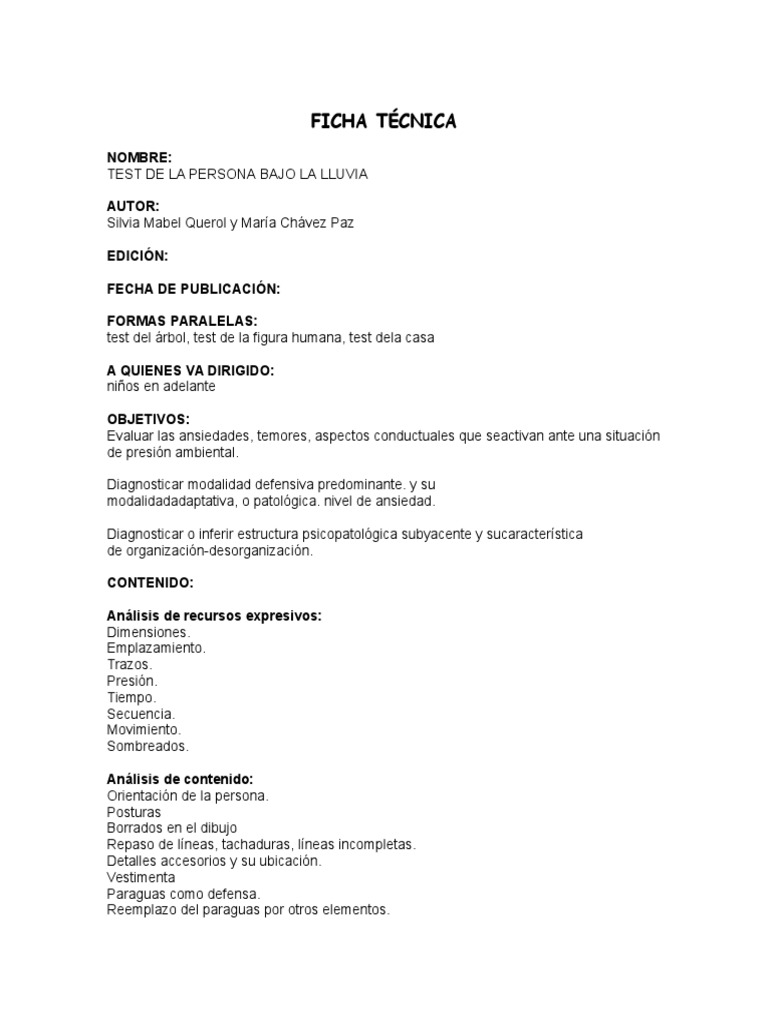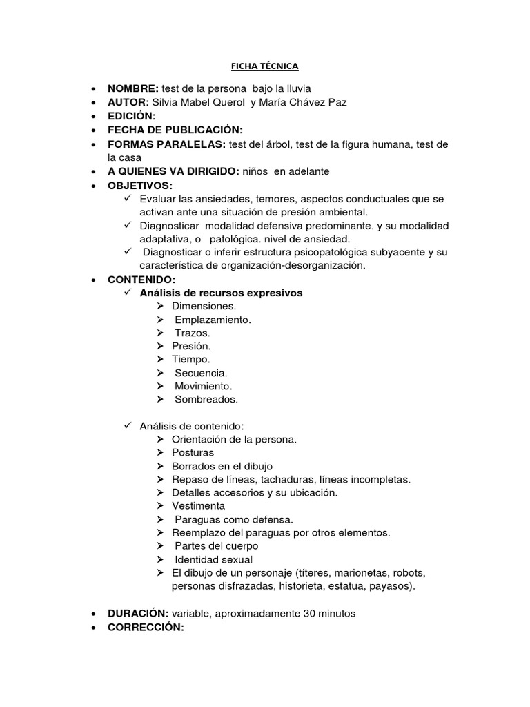 Ficha Tecnica Test Persona Bajo La Lluvia Dibujo Validez