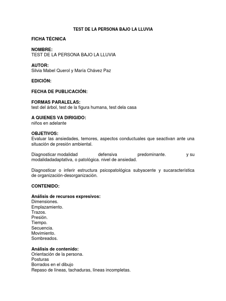 Test Del Dibujo De La Persona Bajo La Lluvia Ficha Tecnica